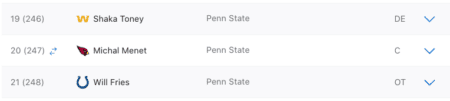 Not long after the WFT selected Toney, the Arizona Cardinals picked PSU offensive lineman Michal Menet with the very next pick, No. 247.
