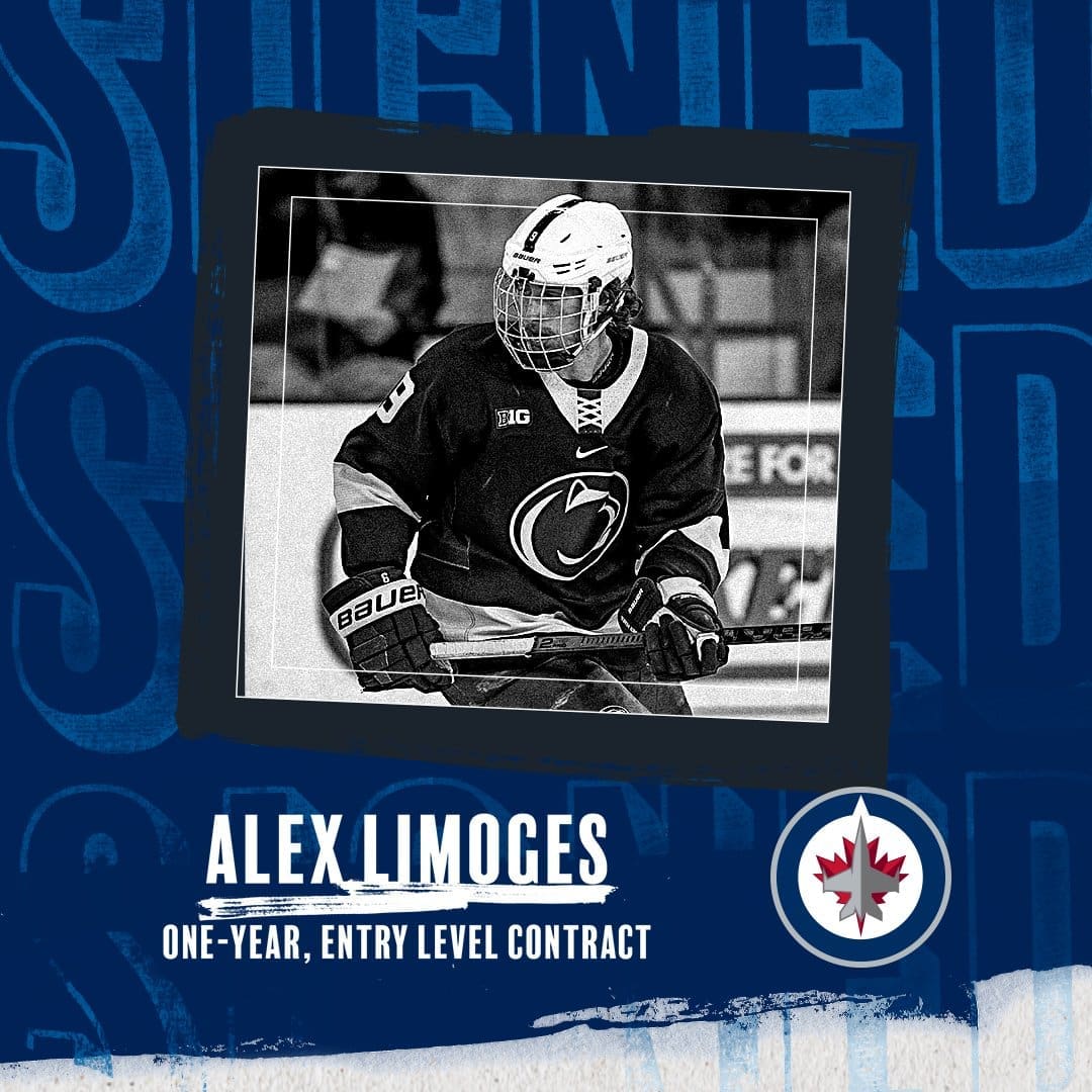 Alex Limoges who played for Penn State’s men’s hockey team from 2017-21, has signed a one-year, entry-level contract with the Winnipeg Jets.