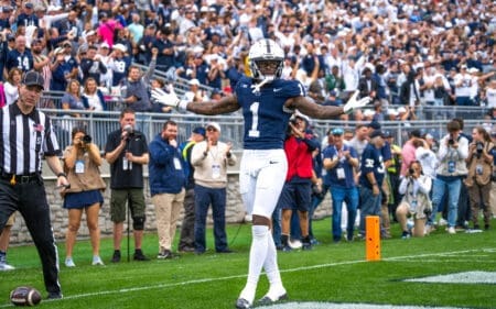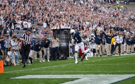 Keandre Lambert-Smith tip toes into the endzone for a 57 yard score in the final minutes of Penn State’s win over Indiana.