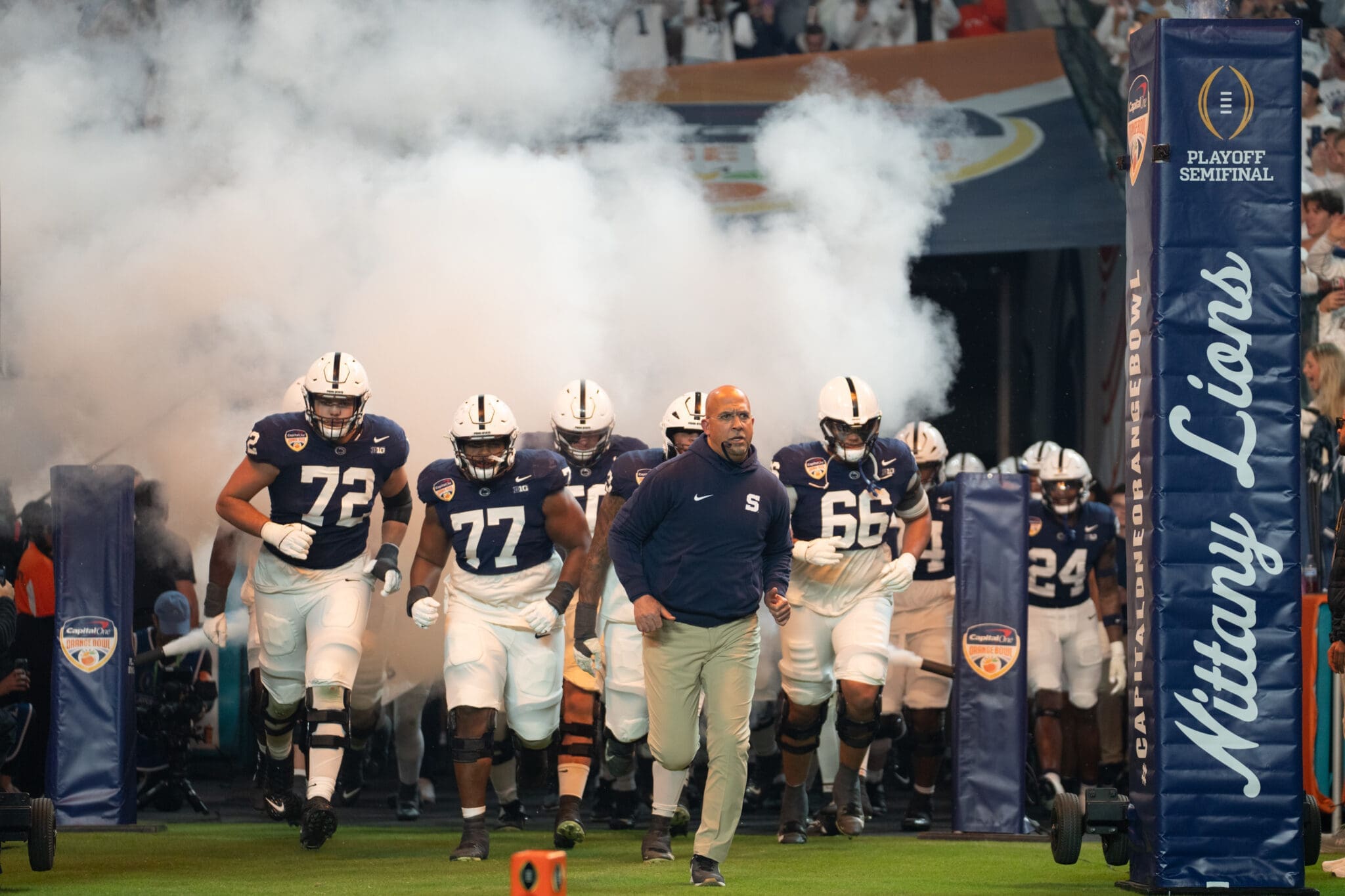 Penn State lost to Notre Dame 27-24, in the Orange Bowl and CFP semifinals last year to close a 13-3 season.