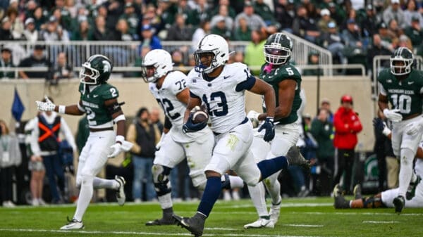 2023: For one reason or another, Singleton’s production dipped. He ended 2023 with 409 fewer yards, four fewer touchdowns and 2.4 fewer yards per carry despite running the ball 15 more times. Singleton put up better numbers in the receiving game, with 26 receptions (up from 11 the year before), 308 yards (up from 85) and 11.8 yards per catch (up from 7.7.) But running the ball is what Singleton’s known for, and many Penn State pundits and fans alike didn’t feel he did that well enough in 2023.
