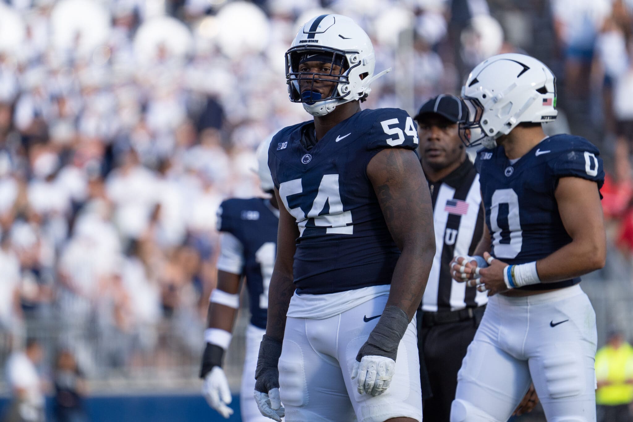On a third and four in the first quarter, Penn State defensive tackle Xavier Gilliam got rolled up on a third down incompletion by Indiana quarterback Fernando Mendoza.