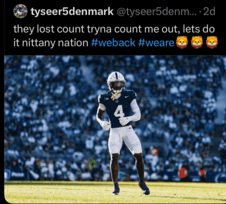 “They lost count tryna count me out, lets do it nittany nation #weback #weare 🦁🦁🦁.”