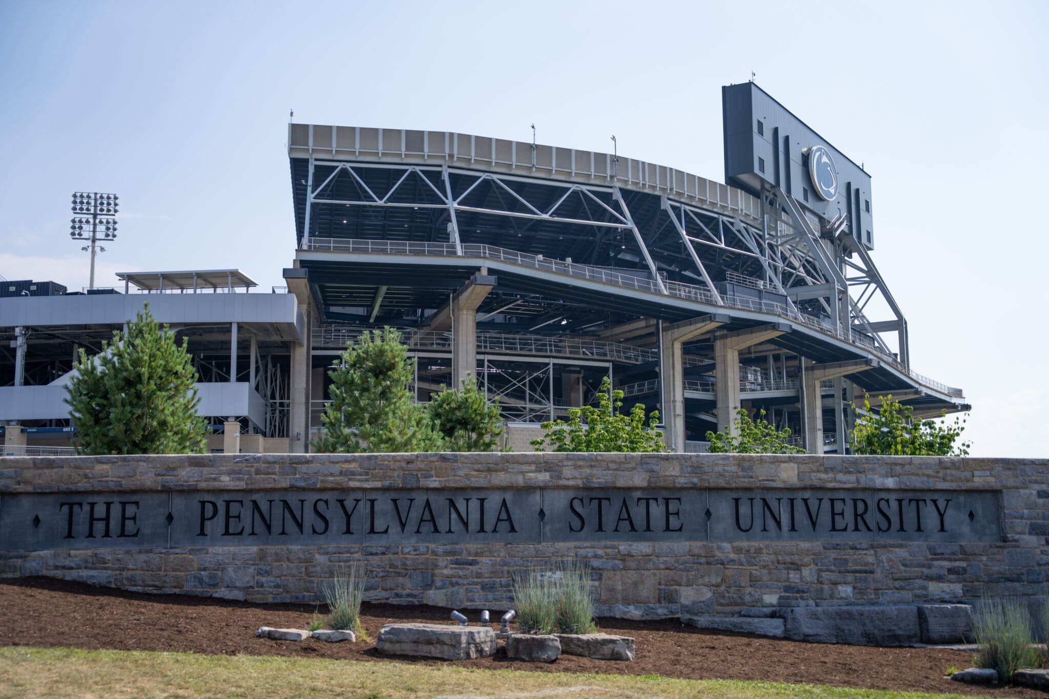 Beaver Stadium remains under construction during the revitalization period and is currently without upper bleachers on the press box side, after the temporary ones were removed.