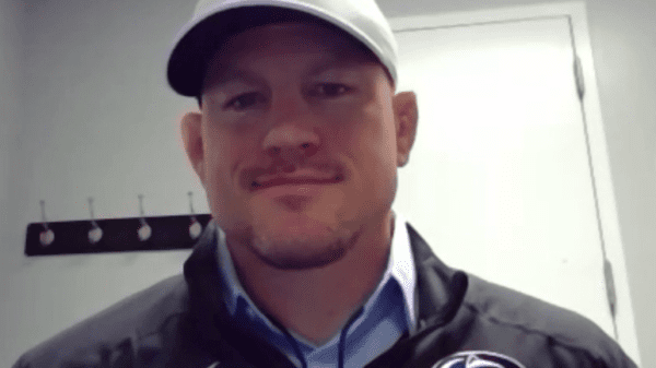 Penn State coach Cael Sanderson talks with the media after the Nittany Lions had four individual national champions at the NCAA Wrestling Championships in...